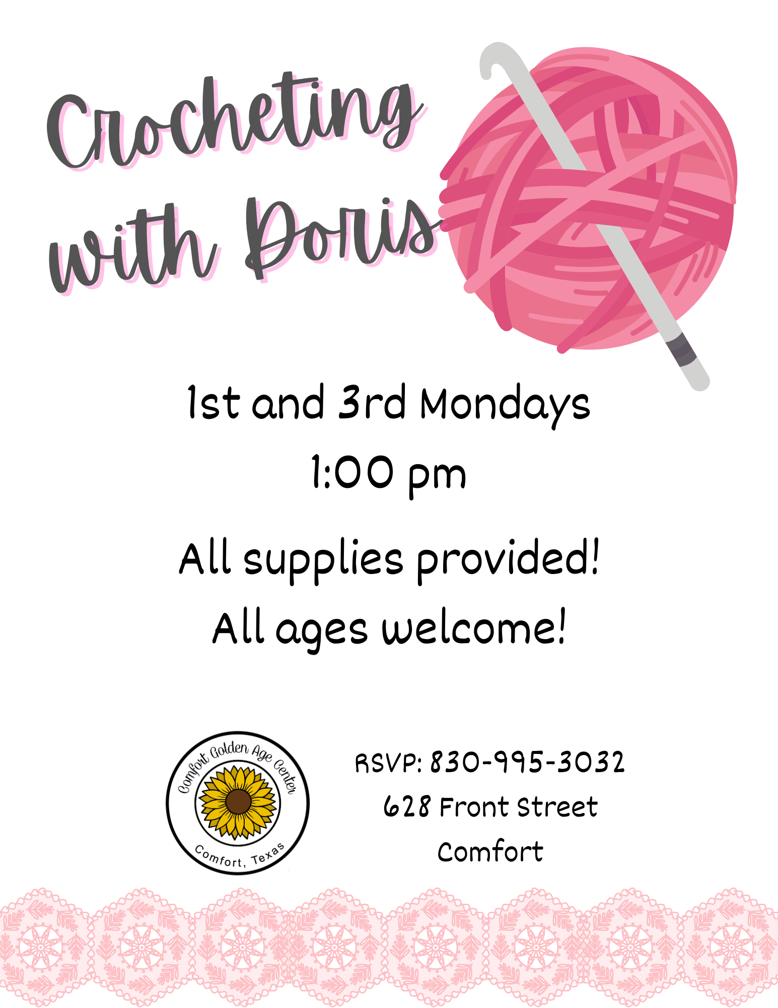 Want to learn how to crochet or just want some company while you work on your current project, then come join us! This ongoing activity is open to all ages and skill levels. The group meets twice every month on the first and third Mondays of the month. Supplies are provided if needed, too.