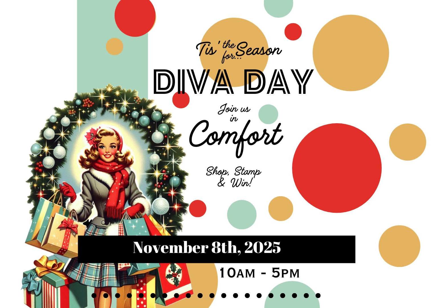 Join us for Diva Day 2025 in downtown Comfort—a full day dedicated to holiday shopping, festive fun, and fabulous prizes. Discover unique gifts, explore your favorite boutiques, and support small businesses while enjoying the festive spirit of our town.