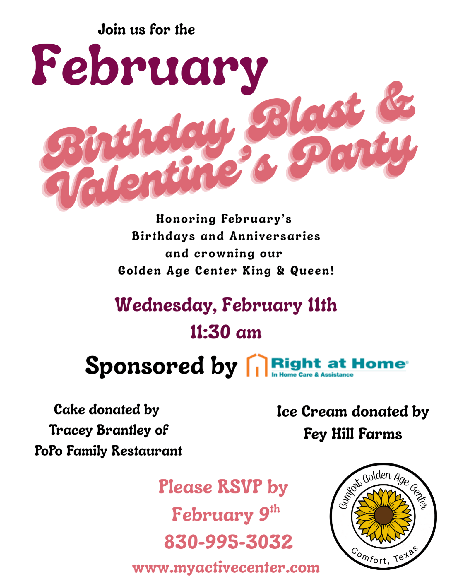 February Birthday Blast & Valentine's Party at Comfort Golden Age Center